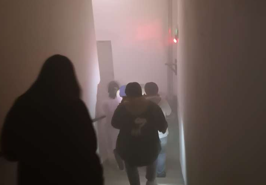 15:06分,警報響了,但又不是很響!行政人員出去看了一眼,還不確定,走到安全通道一看,濃煙滾滾,演習開始了!