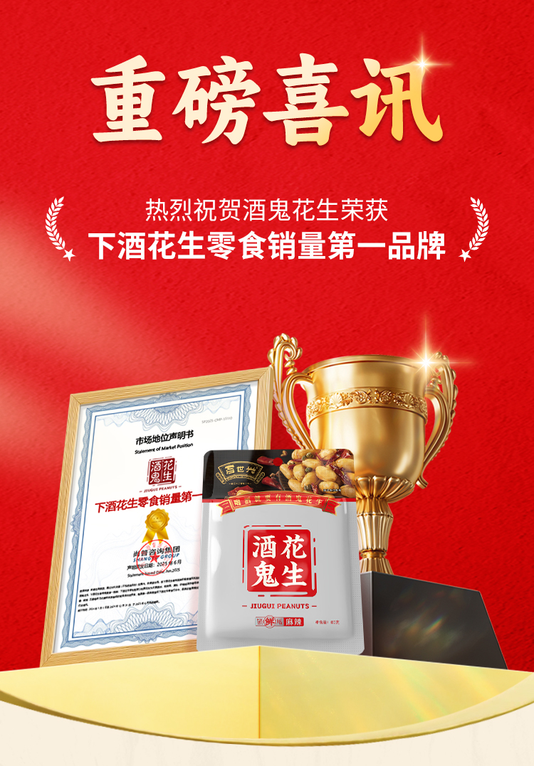 喜報(bào) | 酒鬼花生榮獲“下酒花生零食銷量第一品牌”認(rèn)證